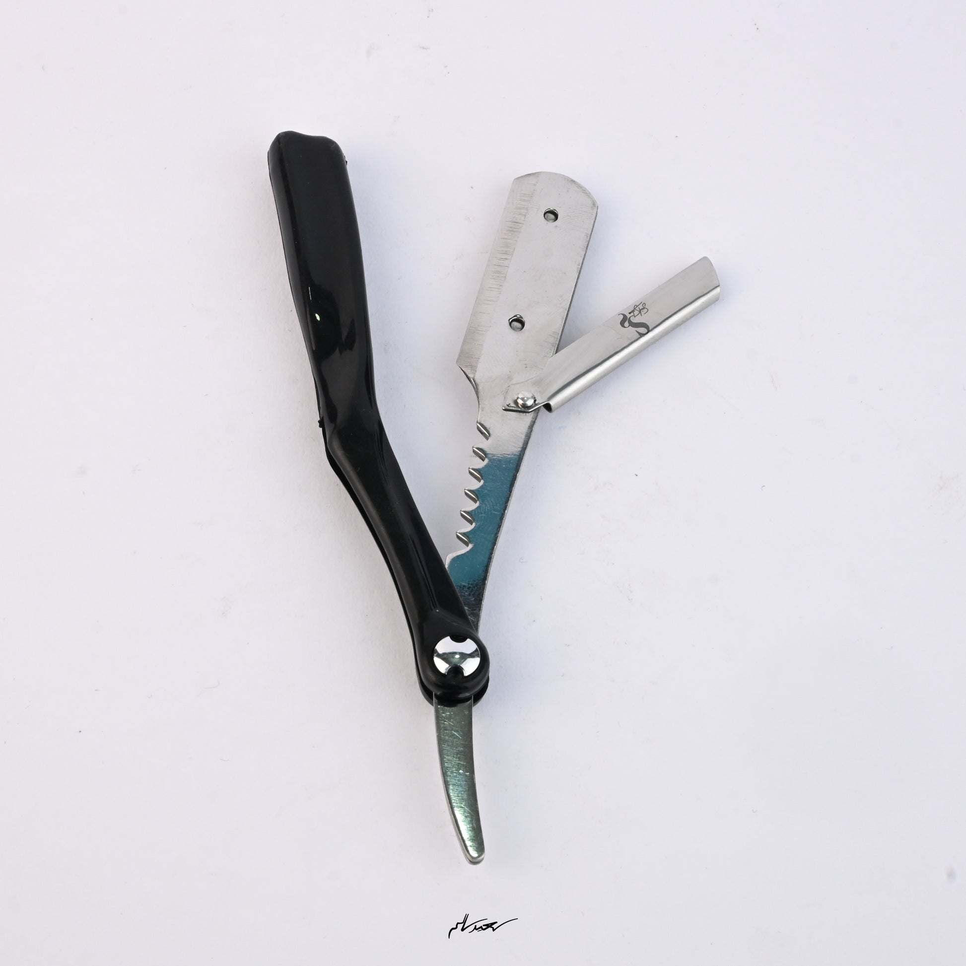 This Professional Shaving Razor in sleek black is designed for those who prefer a minimalist yet high-performing grooming tool. The razor features a durable plastic handle for a comfortable grip, ensuring steady control while shaving. Its sharp, replaceable blade offers a precise shave with ease, perfect for both barbers and personal use. The razor also includes a safety feature with a curved blade holder to avoid accidents, making it ideal for clean lines and detailed shaving. This professional tool ensures a sharp and smooth shave every time, enhancing your grooming experience.