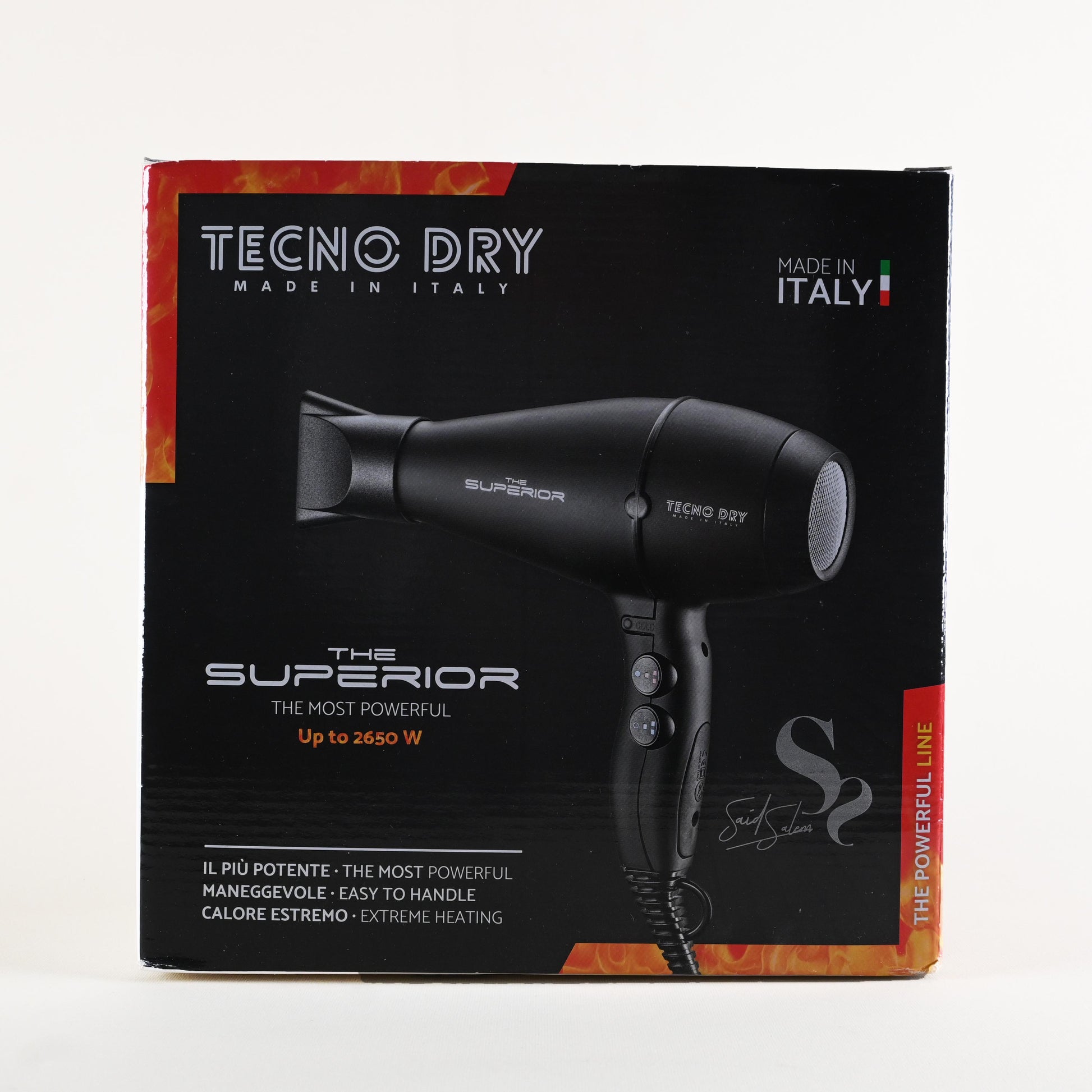 The Tecno Dry Superior Silver Hair Dryer is a high-performance professional hair dryer designed for powerful airflow and precise styling. It features: