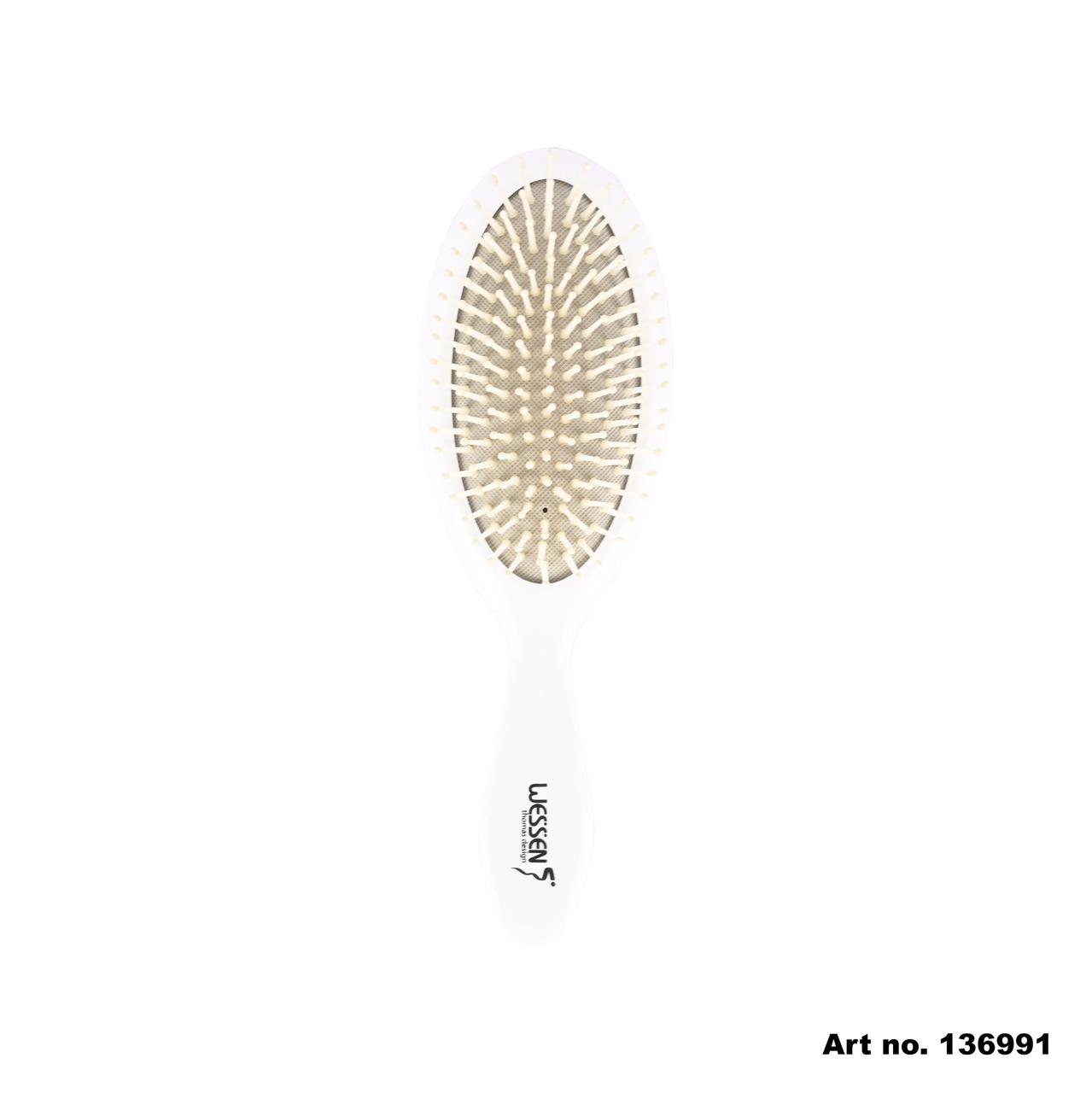 This simple oval brush is perfect for everyday use. Its soft bristles make detangling easy and gentle on your hair, while the comfortable handle ensures a good grip. Ideal for all hair types, it helps keep your hair smooth and tangle-free.